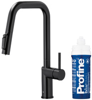 KFA bateria kuchenna z filtracją wody i wyciąganą wylewką Duero Pure Style, czarna + zestaw filtrujący Profine Blue S 6623-313-81